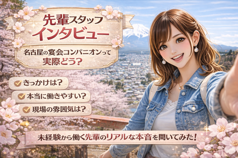 スタッフの声 先輩スタッフインタビュー(社会人Wワーク編) 先輩スタッフインタビュー!名古屋の宴会コンパニオンって実際どう?きっかけや働きやすさ、現場の雰囲気までリアルな本音を公開。本業との両立や大変なことも正直に語ってもらいました。これから始めたい方必見のインタビューです。 2026.03.04 スタッフの声